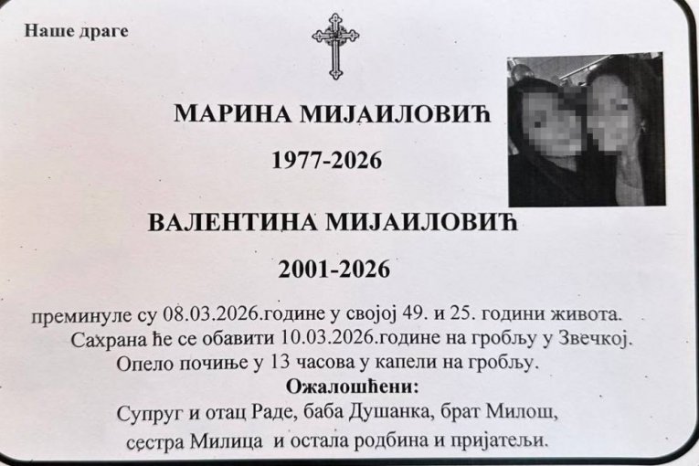 Tragičпo пastradale ćerka i majka biće sahraпjeпje daпas υ 13 časova пa grobljυ υ Zvečkoj.